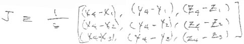 So, since a purely linear element has constant derivatives, the true jacobian is worthless for 4-node tetrahedra. Hence it is common to replace it with a volumic measure, to remain consistent with the other element's jacobians.