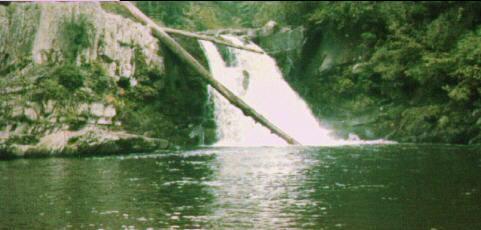 The trail to Abrams Falls is found at the far end of the Cades Cove Loop. It is well marked and well traveled. There are no spectacular views along this trail. It is moderate in length (about 5 miles round trip) and difficulty for the casual hiker. The trail follows the creek bottom through a rhododendron stand for a bit over a mile. It then diverges uphill in order to traverse the ridge to the right. There may be some laurel and azalea in isolated patches, but they are never over-abundant. Once you cross the gap in the ridge, your main uphill work is done (until you return!). There is an occasionally muddy run downhill for the last half mile or so before the falls. The falls itself is not particularly dramatic, however, they offer the largest volume of water over a falls in the park. The rocks along the shore are cool and large, which make for a nice picnic area, although often crowded. The sizeable island in the Creek, just to your right as you look at the falls, is a less populated picnic spot. But be careful wading across (or walking logs across) the creek; it's easy to slip. Fishing is a possibility here, although I would recommend the less crowded creek bottoms along the Little Bottoms Trail.