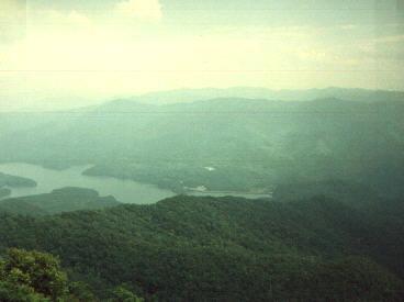 The road over the dam is now closed, or was in 1989. The first mile and a quarter to Shuckstack is pavement with no appreciable elevation change. Sparse rhododendron blossoms along the road here. The next couple or three miles was moderate hiking at a slow pace. Hardwood dominates the lower elevations. Many pretty wildflowers, of which I am ignorant, adorned the path at middle and upper elevations. As we reached higher elevation, hardwood yielded somewhat to the laurel, flame azaleas and such. We saw a variety of oaks, maples and hickories with dogwood and sassafras also very abundant. Poplar, chestnut, blueberry, elm, birch, sourwood, black locust, ash and redbud were also notable. The last half mile was quite steep, but the hike is not as grueling as most report it to be. The fire tower is a welcome reward. The view is splendid. WATCH YOUR HEAD!!! We were both walloped more than once by the pugnacious steel beams. Bees are abundant and pounce hungrily upon packed lunches. But they will rarely sting the calm hiker. The fauna noted on our trip (aside from the bees) was three lizards, (two grey, one orange and brown) two non-poisonous snakes of unknown species, many swallowtail butterflies and squirrels. The view of the lake is gorgeous.