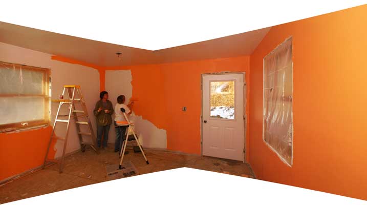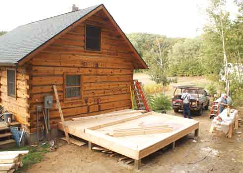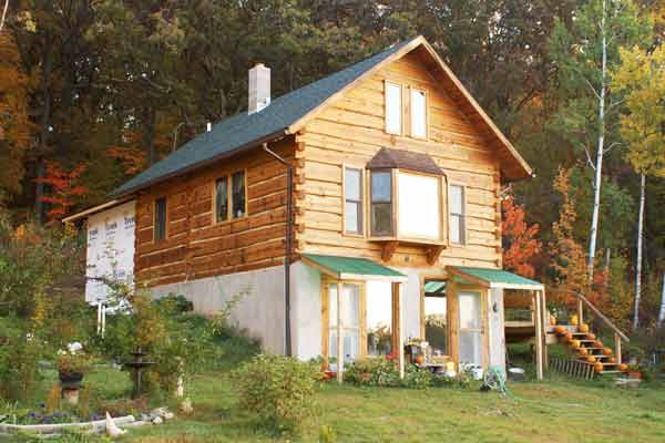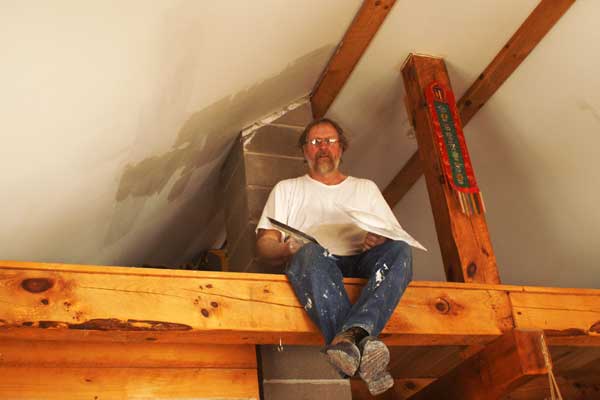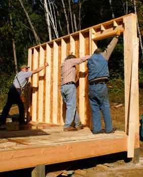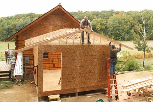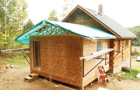 The outside wall on the right becomes an inside wall with no changes other than sawing a hole in it for a door. Five photos stitched together: I don't have the 10mm lens that would be needed to do this in one shot. |
