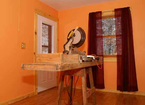 Had the use of a cut-off saw. Really neat tool that I don't have enough use for to own. Only used it for trim, there was no need for any precision and I could use my skill saw outdoors to cut down on sawdust in the house. |