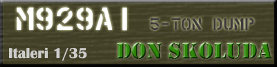 Don's M929A1 five-ton dump truck was converted from the Italeri M923 "Big Foot" kit. The dump body is a