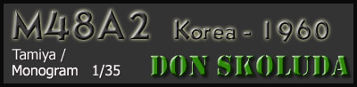 The Tamiya kit was converted with parts from the vintage Monogram M48. The paint represents a "mud smear" camo, used in Korea, circa 1960.